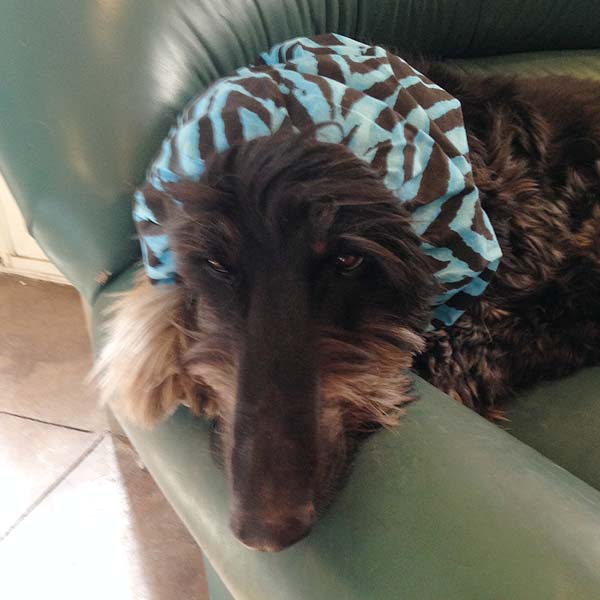 Thick cotton for everyday maintenance snood 16" length and 16" head and neck opening.